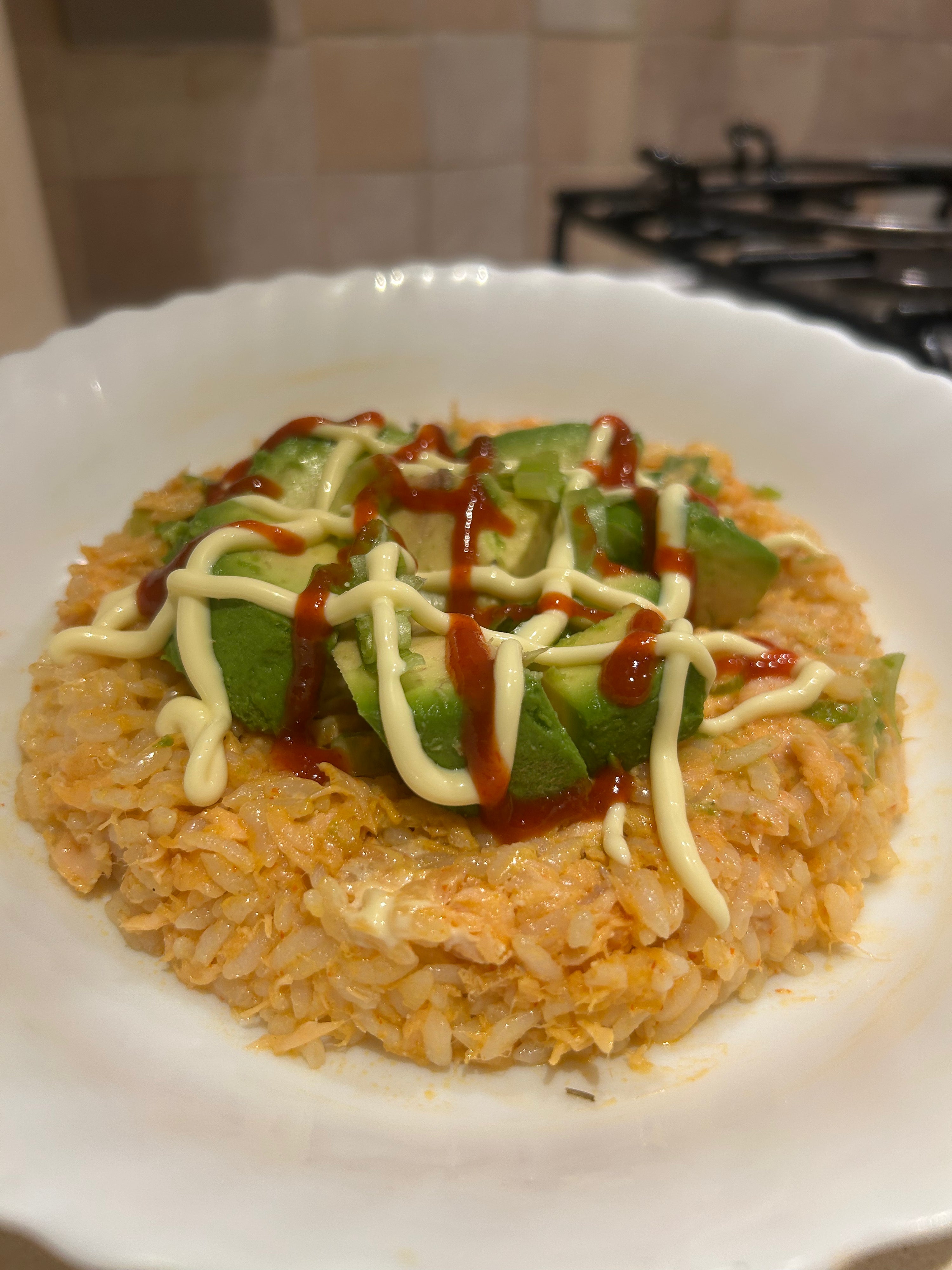 A viral TikTok-inspired bowl with our miso salmon mixed with warm rice and sriracha, and topped with avocado chunks and a drizzle of Kewpie mayo for a viral flavour in every bite! 🐟🍚🥑🔥